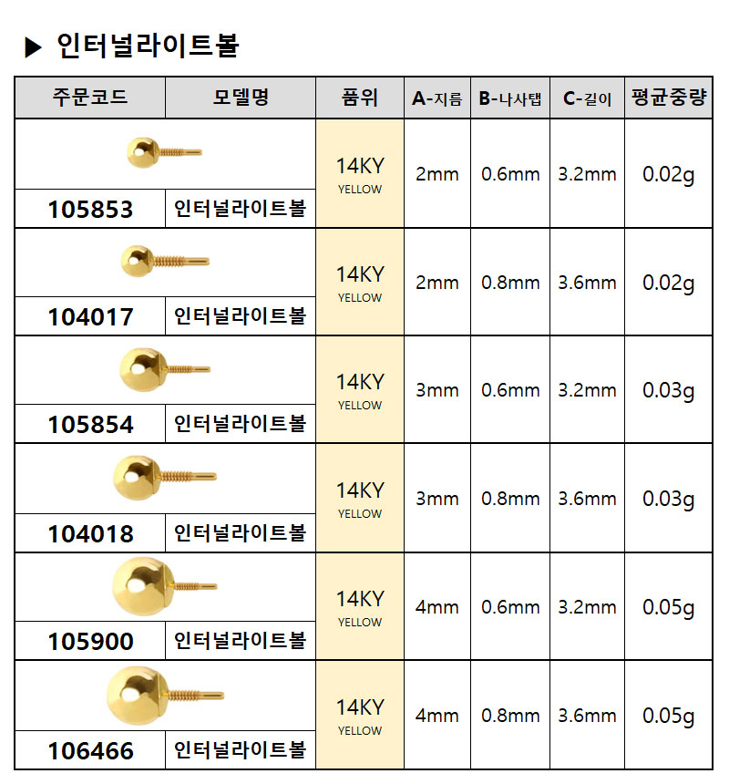 • Product name 14K INTERNAL LIGHT BALL PIERCING