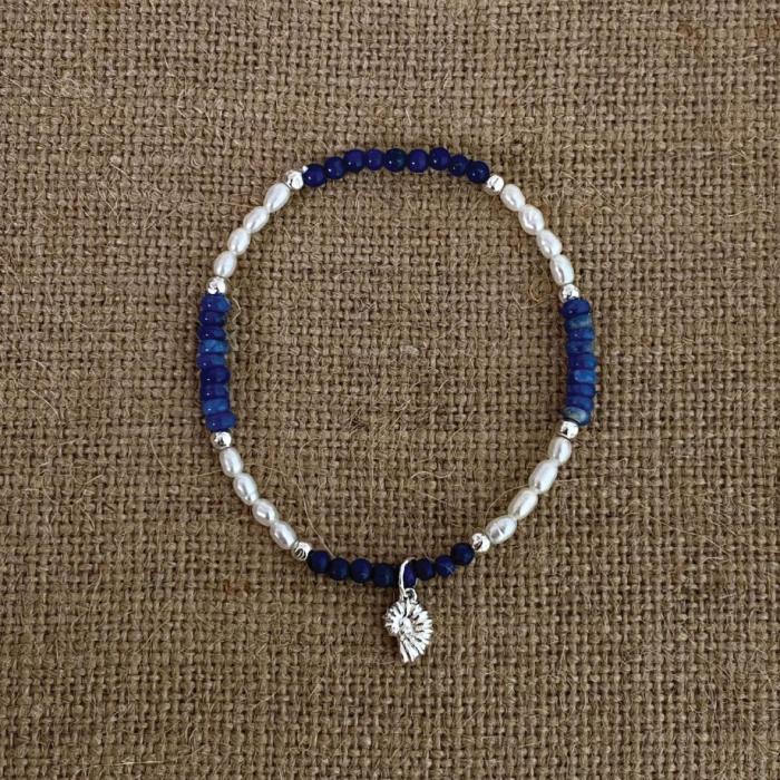 Stretch design that ensures a comfortable fit for all sizes, adorned with Lapis and Sodalite stones, freshwater pearls, and customizable features for a uniquely personalized touch.