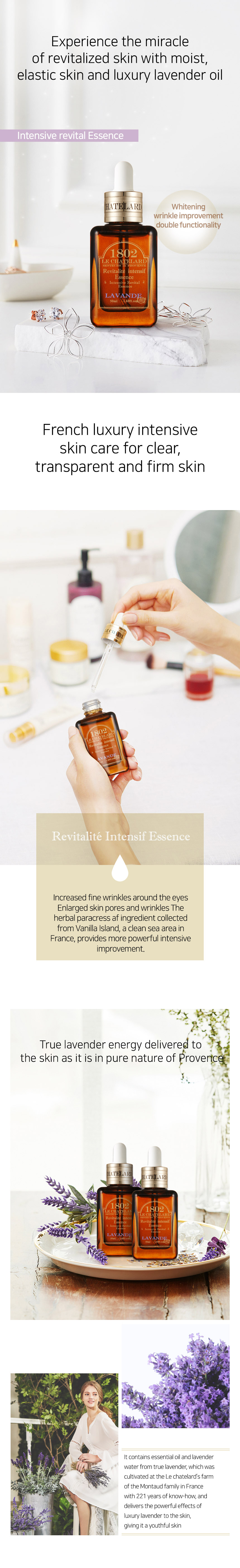 50ml of brightening and wrinkle improvement double funtional serum. Experince the miracle of revitalized skin and elastic with luxury lavender oil. Incresed fine winkles around the eyes and enlarged pores, The herbal ingredients provides powerful intensive improvement.