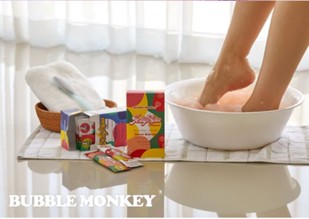 Jelly Spa Treatment is a foot spa therapy that goes through steps 1 and 2. It helps to relieve fatigue, improve blood circulation, and moisturize the feet.