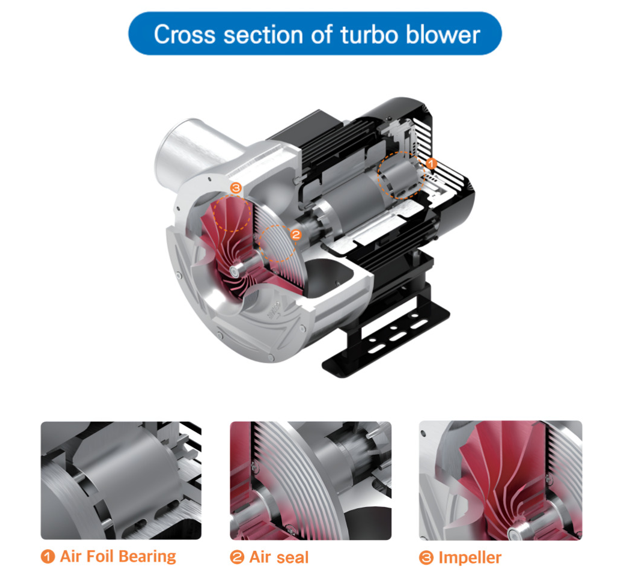 CENAIR Turbo Blowers are installed and installed by drastically reducing the size and weight of blowers by applying innovative technology including Air Foil Bearing, Directive drive, High efficiency motor and Impeller. It not only reduces various costs required for operation, but also provides an eco-friendly and safe working environment.