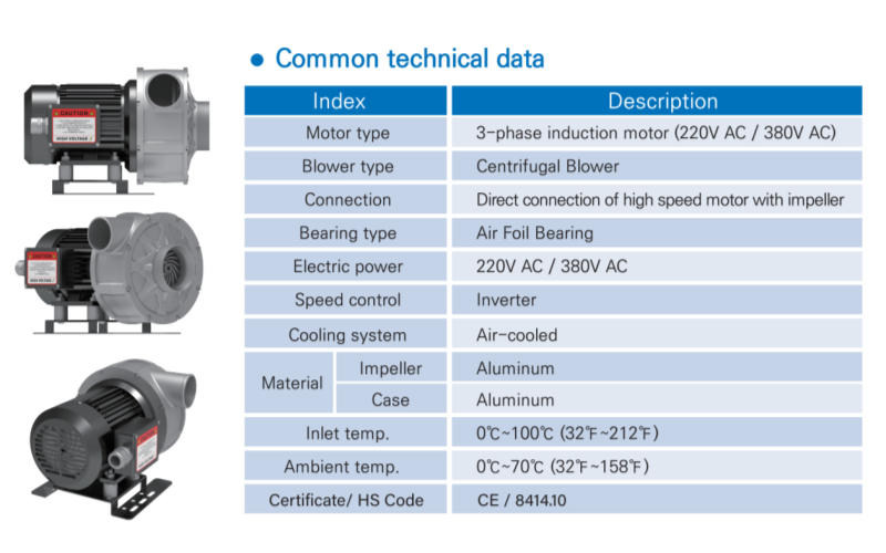 CENAIR, Centrifugla Blowers, are newly released by drastically reducing the size and weight of blowers by applying innovative technology including Air Foil Bearing, Directive drive, High efficiency motor and Impeller. It not only reduces various costs required for operation, but also provides an eco-friendly and safe working environment. The followings show special features.
