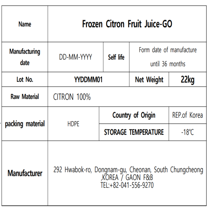 • Product name (Product name): Yuzu Juice - GO (Korean Citron, Yuja, Yuzu)