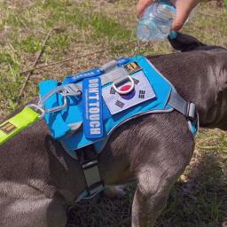 The Air-cooling harness fabric absorbs heat quickly and helps a dog which has hard time releasing its body heat to maintain its body temperature.
