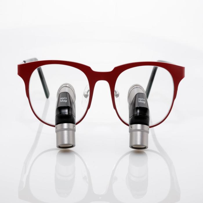 Our signature ergonomic loupes improve comfort and concentration for better results and pain-free work for longer. With an average adult head weighting 4.5-5.4kg(99-11.9lb), tilting the head down increases the gravitational pull on the skull. Long-term forward neck posture may lead to a collection of symptoms that often manifest as neck & back pain, shoulder tension, stiffness and headaches. PENTAMAG changes the light path downward by 45 degrees so that surgery is possible even in a neutral position. This exceptional ergonomic design reduces the strain on the cervical spine and relieves neck and back pain while alleviating eye strain.