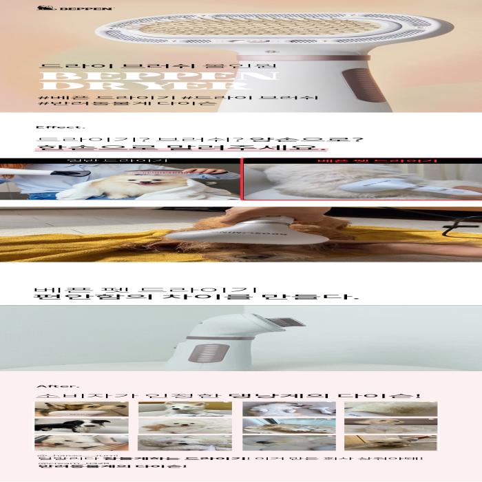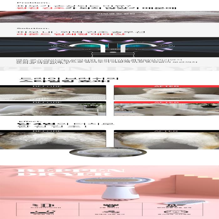 >General dryers for pets are noisier than a jet, so we designed it to reduce the noise by more than 2 times. .