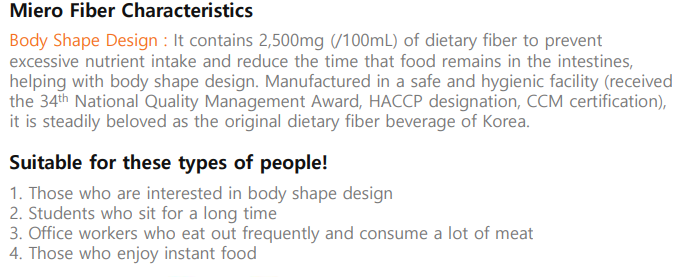 Korea No.1 Dietary Beverage Miero Fiber Drink