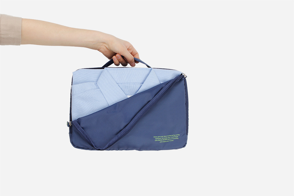 Bags In Bag T-Shirt Case is a travel pouch that can store various items such as T-shirts, towels, underwear, etc. while traveling.