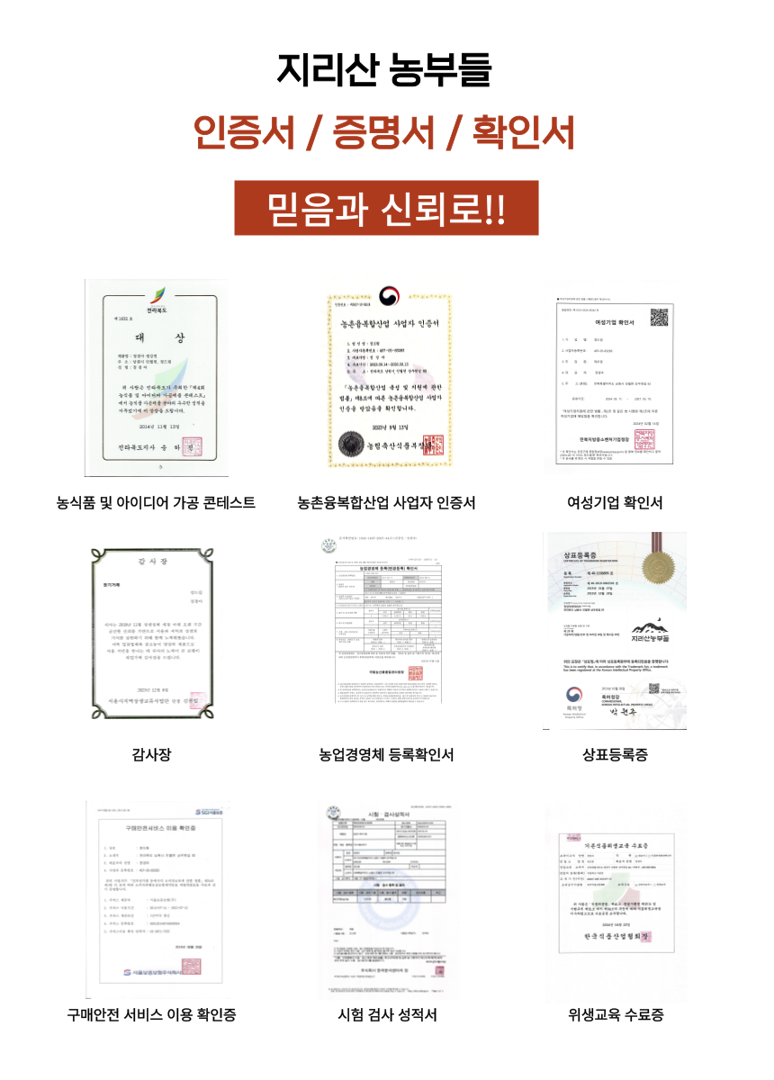• Brand name (Jeong Dream/Jiri Mountain Farmers)