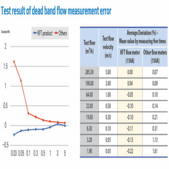 Resolution is 10 times improved compared to existing products, and measurement error is satisfied within 1% in the dead zone of 0.3 m/s or less
