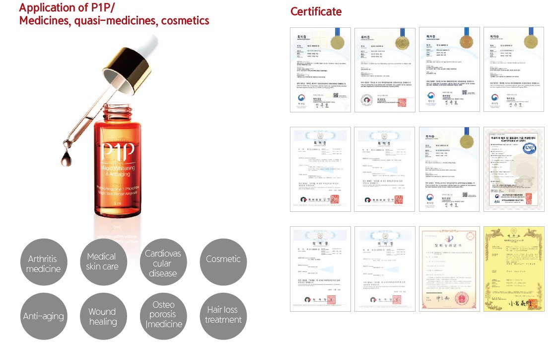P1P and S1P are structurally similar, and P1P is an innovative new substance with an analogue of S1P with the same efficacy in the cell of which improves the stability and solubility. in addition, P1P were able to improve the high price of S1P(KRQ 400 million per 1g) to commercialize skin and scalp care products.
