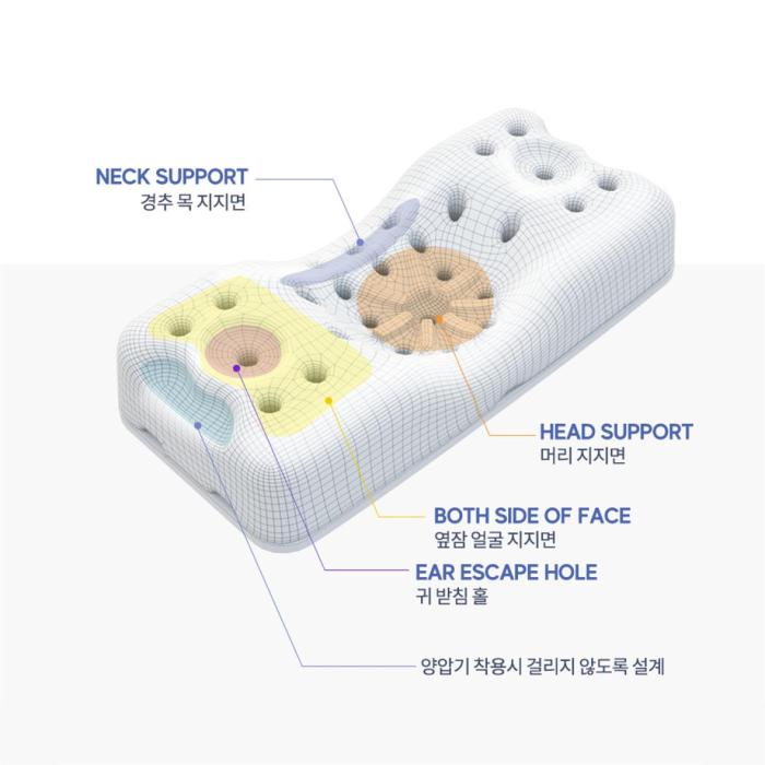Bagaeking 3D Air Flow System Pillow has 33 holes connected to all sides of the pillow to cool the head while sleeping, making the pillow a healthy pillow that breathes.