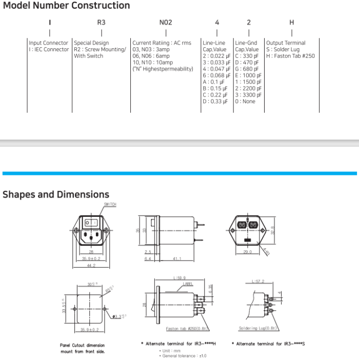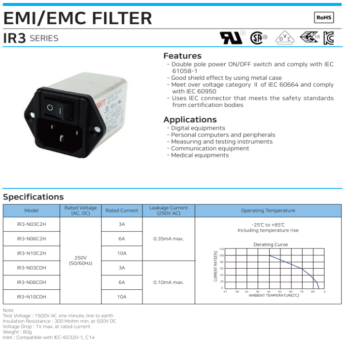 [IR3-N06C2H] EMC/EMI Filter, Inlet, 6A, Switch, High Performance