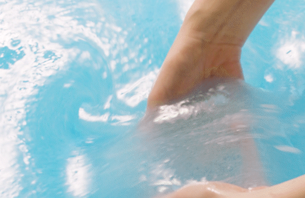 Dissolve the bath jelly in a bathtub filled with water to create your desired consistency.
