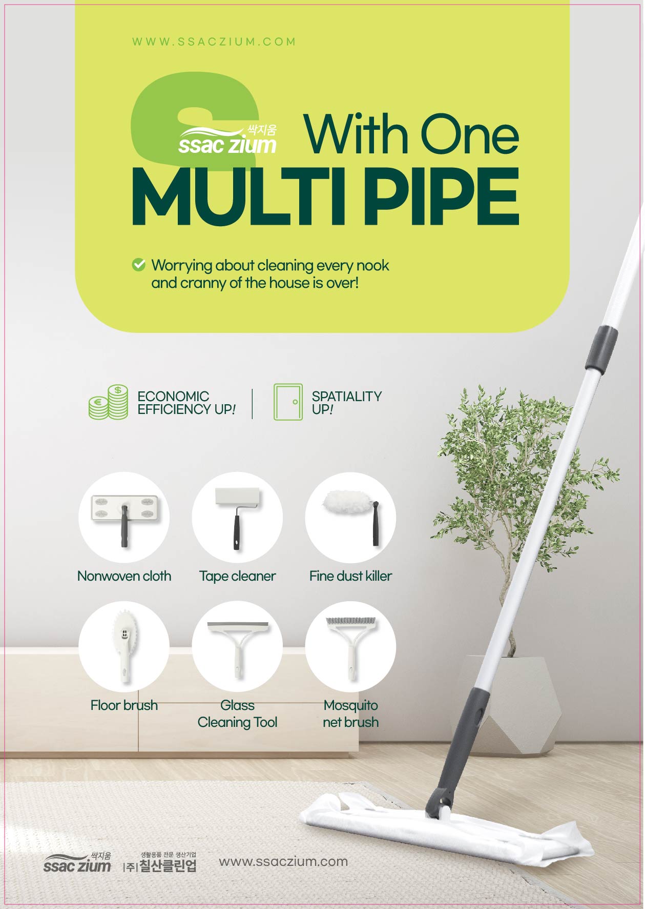100% domestically produced/domestically manufactured product that can be used for a long time - SSAC ZIUM Ultra-thin Floor Mop