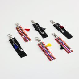 A multipurpose keychain made with a belt made of traditional Korean Hanbok fabric with tassels and pearls. It's great as a Korean tourist souvenir.