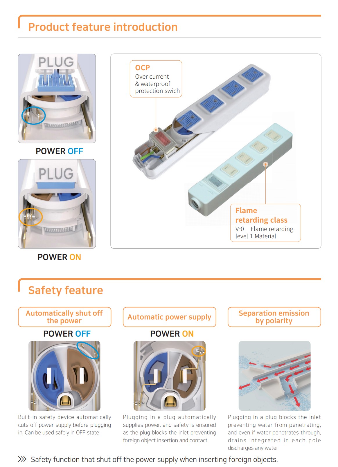 After plug insertion → Automatic power supply safety system technology.