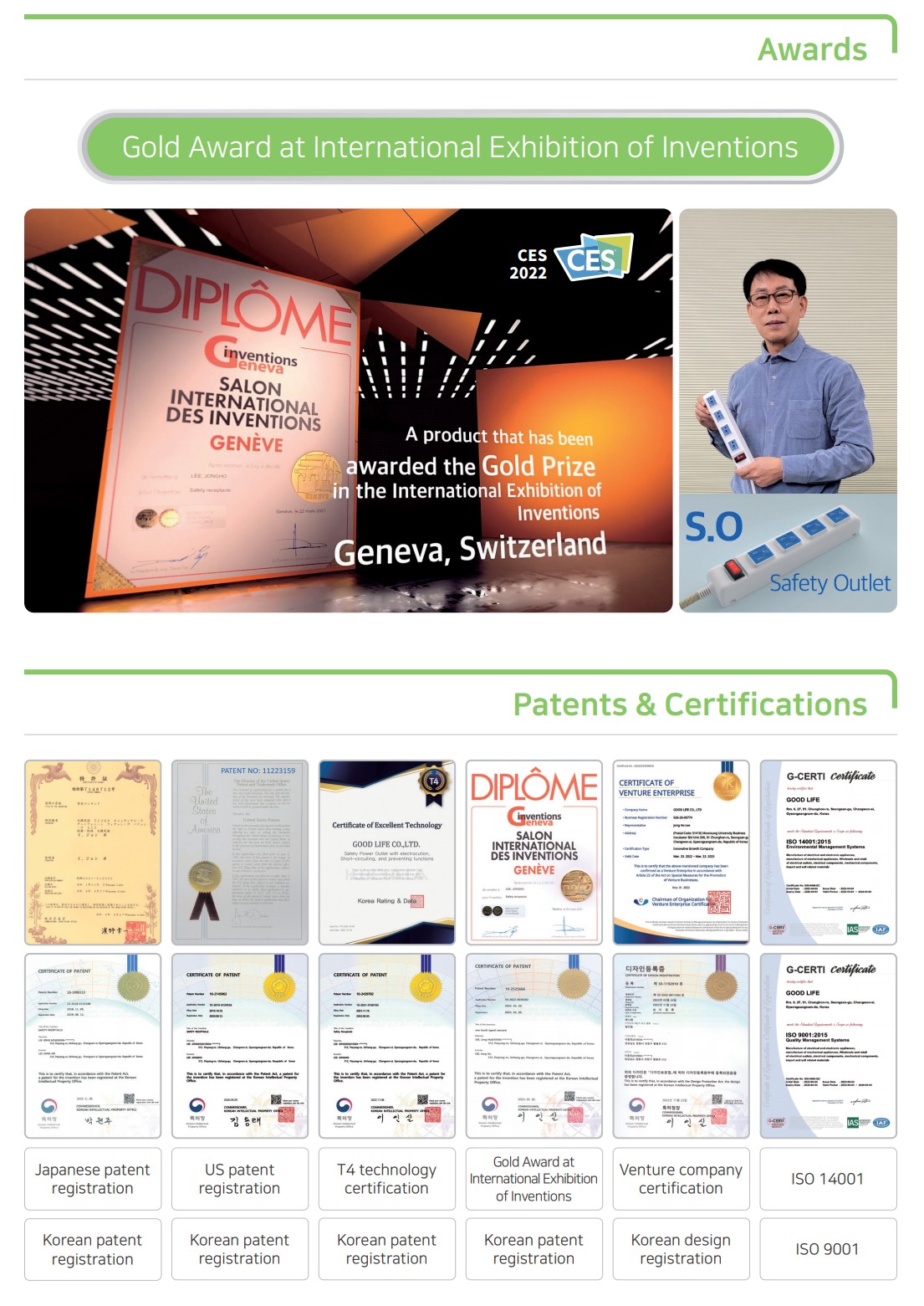 - The product was awarded the "Gold Prize" in the electrical sector at the International Exhibition of Inventions Geneva 2021, Switzerland.