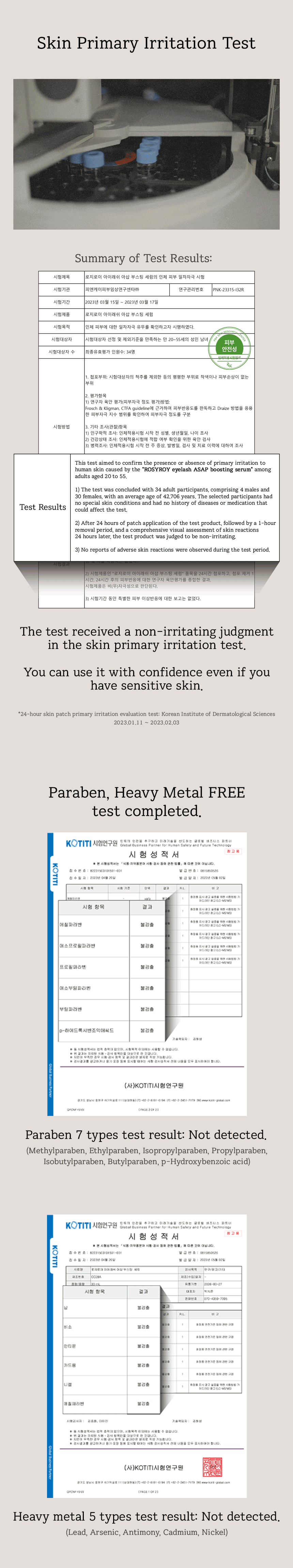 Completed testing for the absence of 7 types of parabens!ꠗCompleted testing for the absence of 5 types of heavy metals!ꠗNon-irritation test result: No irritation (0.00)!ꠗSkin irritation test result: "Low (non-)irritation" verdict!