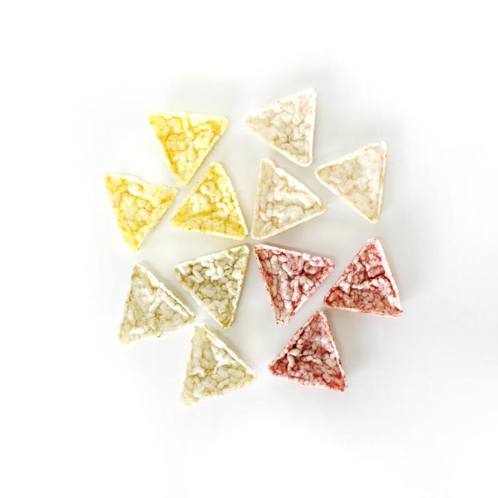 Snack smart with BABI CHIP — a wholesome assortment of four functional rice chips crafted with super ingredients like red yeast, turmeric, chlorella, and brown rice. Each triangle is air-baked without oil, and contains no artificial flavors or preservatives. Designed for those who seek healthy, guilt-free snacking, this set combines heart, immunity, detox, and balance — all in one box.