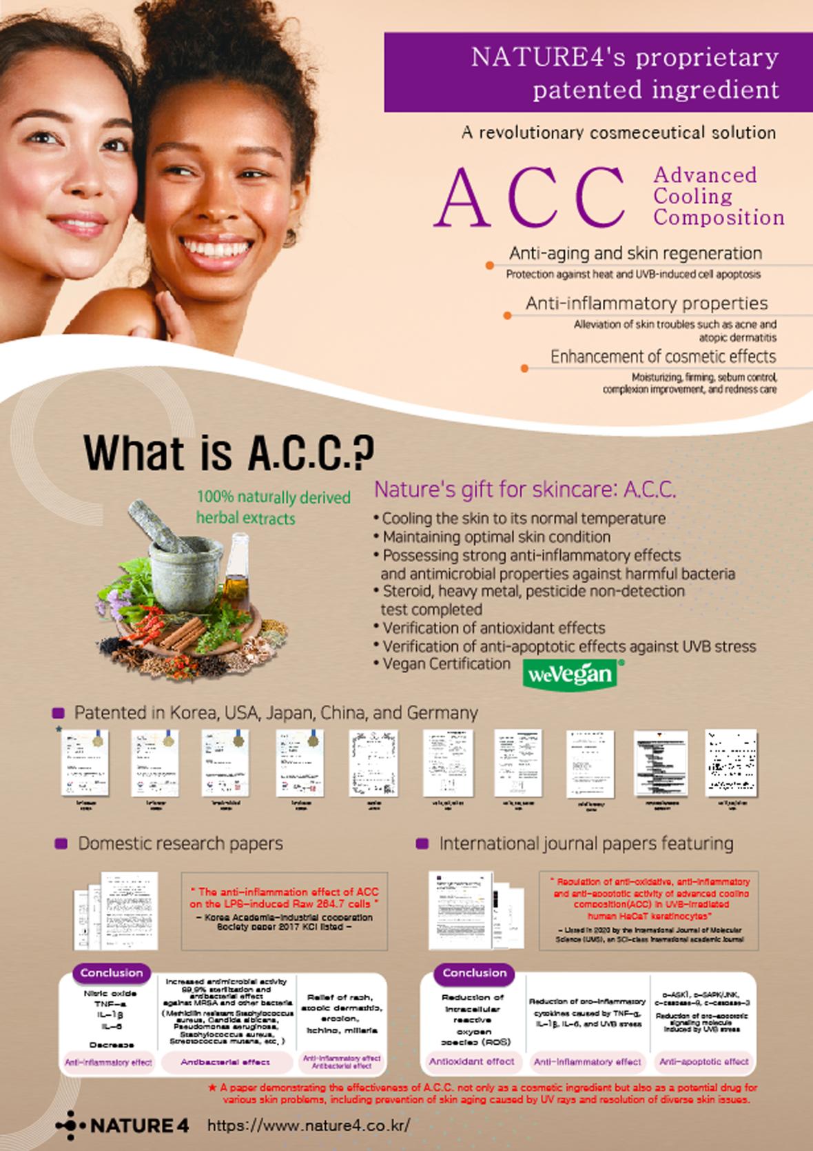 Healthy skin is an exclusive raw material developed directly based on the idea that skin temperature is important, and has a cooling function, a powerful anti-inflammatory effect that solves various skin troubles such as rashes, and an anti-apoptotic effect that can prevent cell death caused by UVB stimulation. It has been published in a paper in an SCI-level international journal and has a global patent registered, and is suitable for use in derma cosmetic products that actually relieve skin troubles.