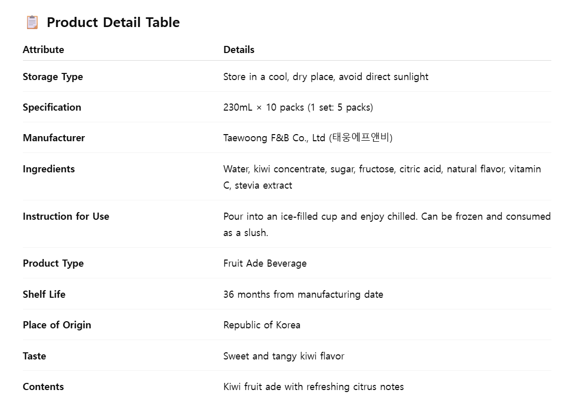 A healthy drink that contains kiwi concentrate to provide a sweet and sour taste and refreshing aroma.