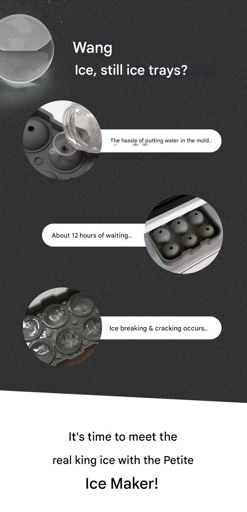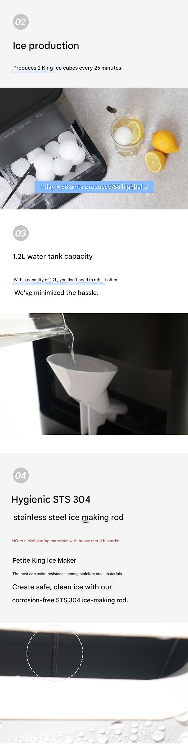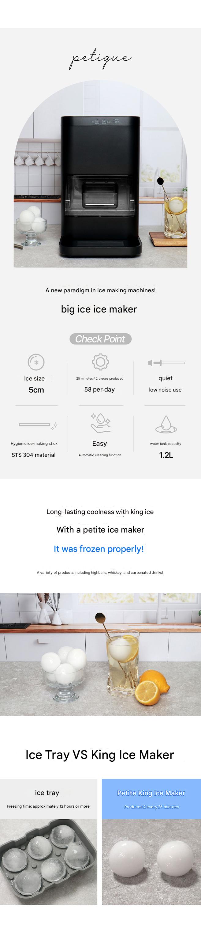 The Petique King Ice Maker is a home or commercial ice maker that produces large ice cubes suitable for whiskey highballs.