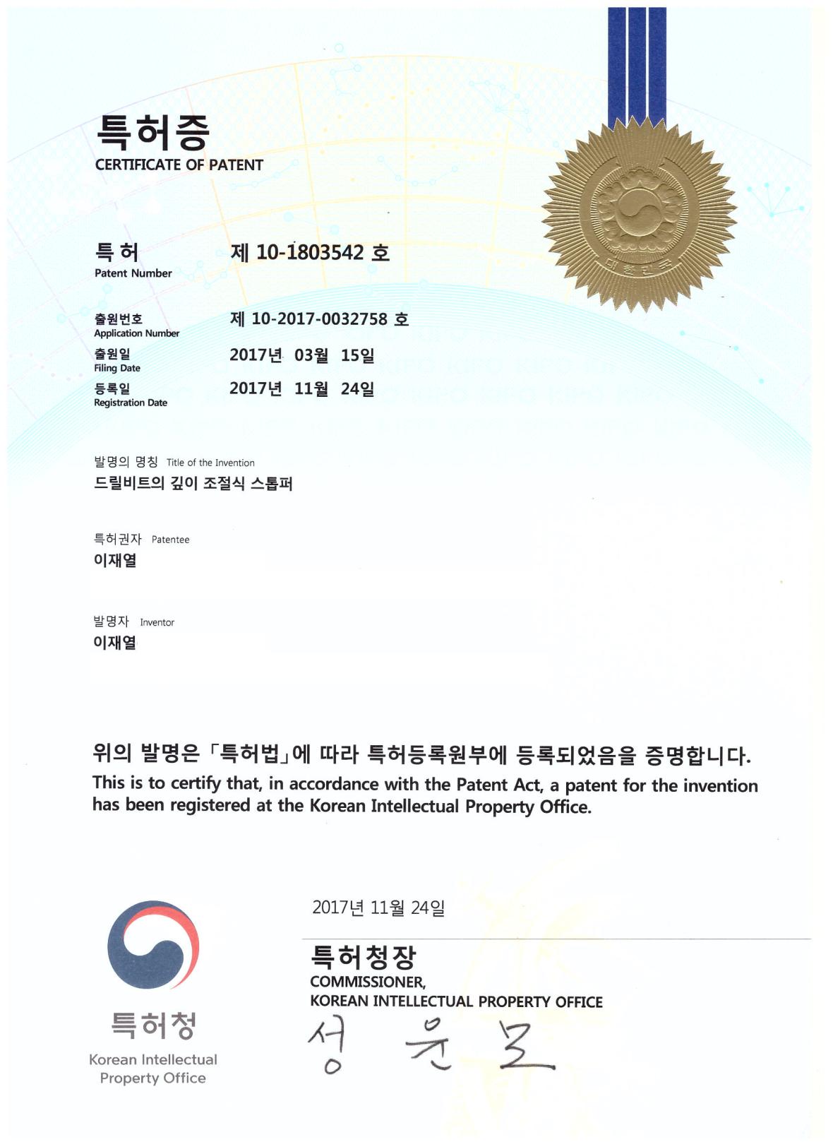 • Patented technology for a depth-adjustable stopper mechanism, recognized in both Korea and the United States