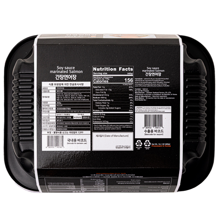 Enjoy the premium taste of Korea with our Soy Sauce Marinated Salmon (400g), made from 37.5% top-quality salmon. This product offers a clean, non-fishy flavor paired with a pleasantly chewy texture that highlights the natural freshness of the fish.