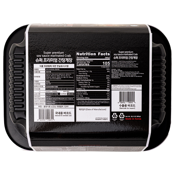 Ingredients: Female Blue Crab 37.5%, Soy Sauce Broth 62.5%