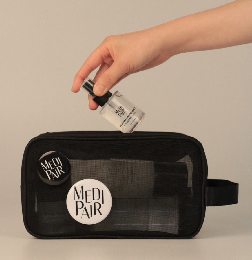 Mist Refillable Bottle (50ml) + Mesh Pouch + 2 Medipair Badges (Black, White)