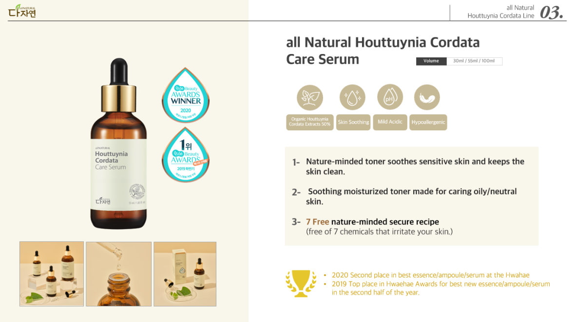 - Soothing serum containing natural extract to help soothe sensitive skin and care clean pores.