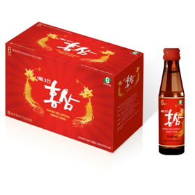 Ingredient : Korean red ginseng extract (total ginsenoside 70mg/g, incls. Ginsenoside Rg1+Rb1=6mg/g, solid content 65% more), jujube extract, Korean angelica extract,cinnamon bark extract, fluctose corn syrup, sodium citrate, nicotinic acid amide, refind salt, caramel pigment, scutellariae radix, ginseng flavor and refind water