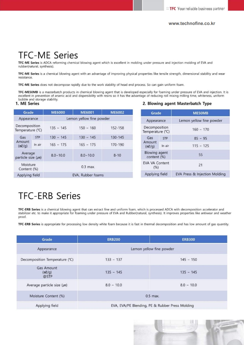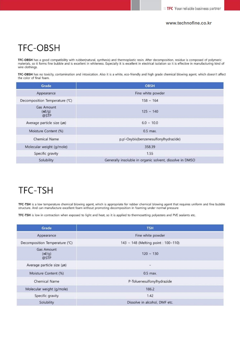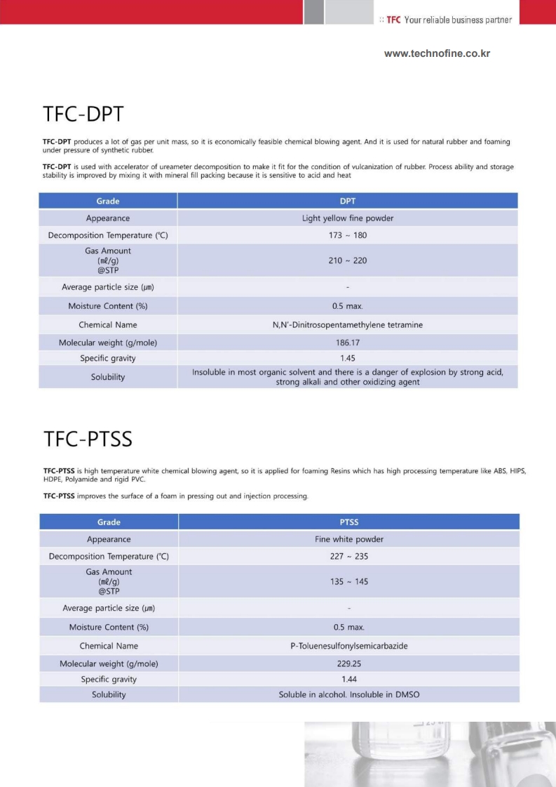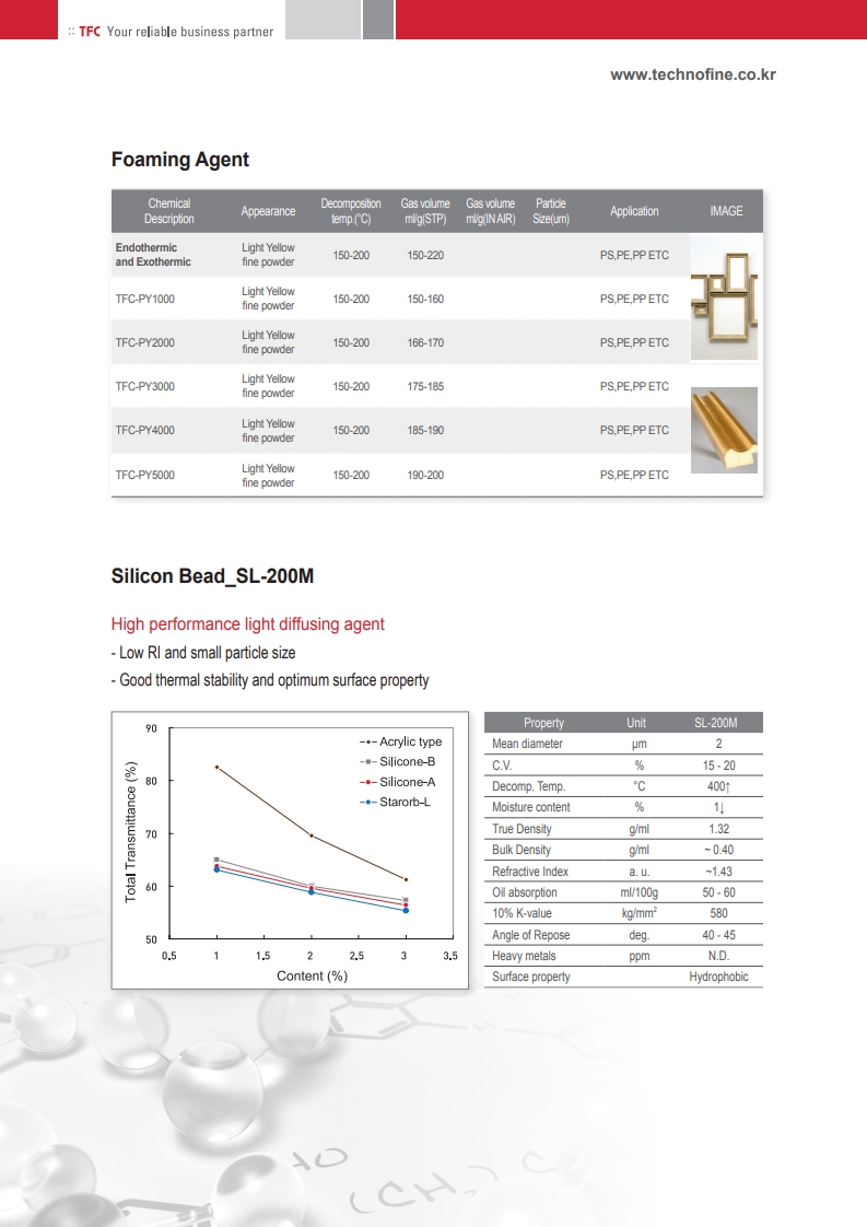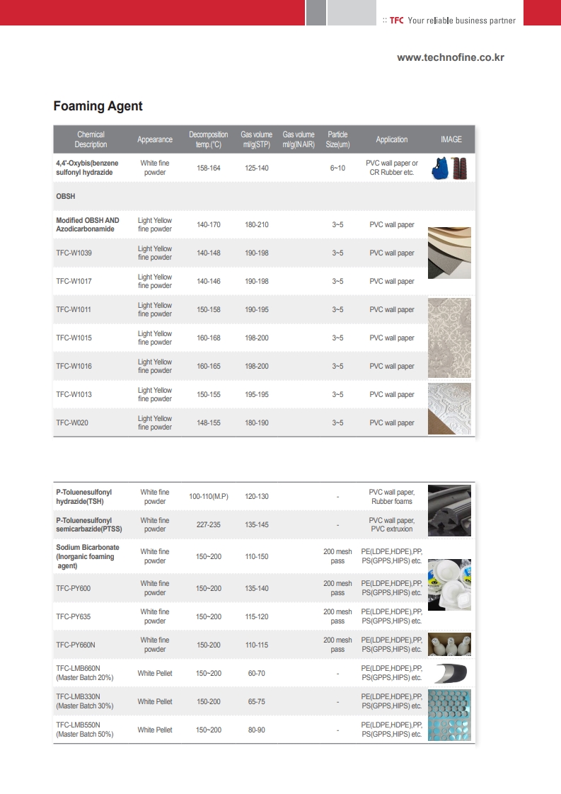 ■ Provides excellent dispersion with resins for uniform and stable foam structure.