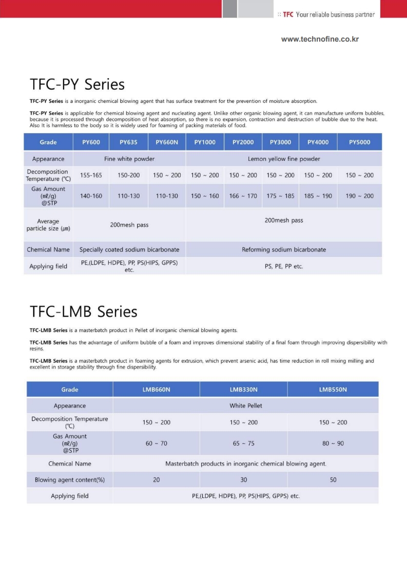 TFC-LBN330N is a masterbatch-type inorganic chemical blowing agent optimized for extrusion