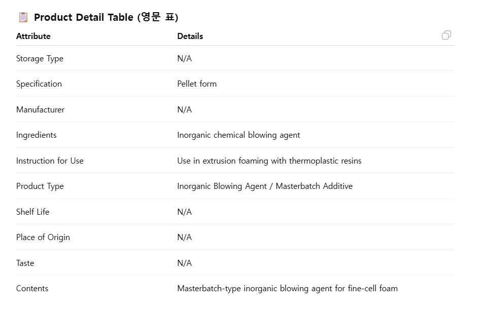 foaming applications. Composed in pellet form, it provides excellent dispersion with thermoplastic